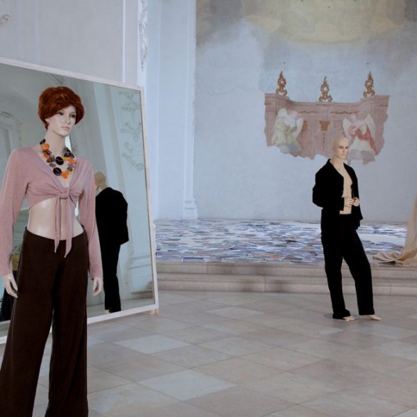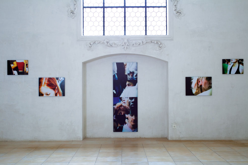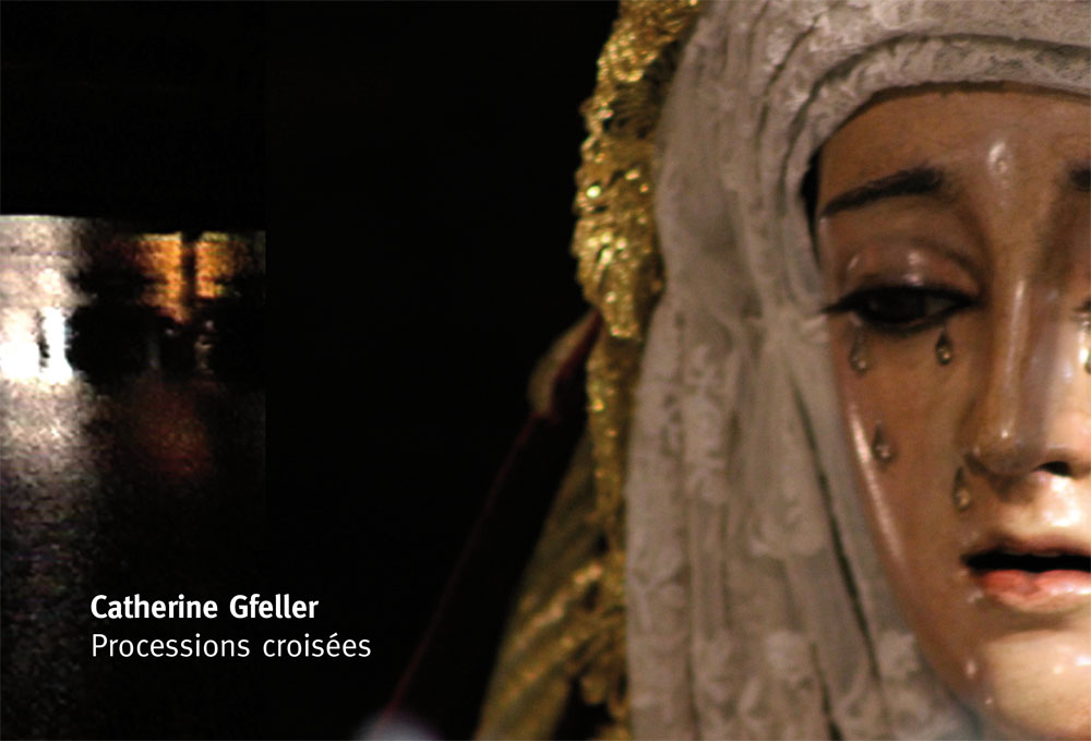 Pour son exposition dans l’abbatiale de Bellelay, Catherine Gfeller focalise son attention sur une foule particulière, celle observée durant les processions des Vierges à Séville lors de la Semaine Sainte. Intitulée Processions croisées, l’exposition joue avec le caractère à la fois profane et sacré de cet événement. Les costumes de Vierges se mêlent aux tissus des habits de la foule, leurs visages pleins de pathos dialoguent avec les regards émerveillés des passants, les corps de porcelaine et de chair se frôlent sensuellement, la nuit scintille des lumières des cierges et de la ville. Les rituels urbains et sacrés, traditionnels et contemporains, s’entremêlent, s’échangent comme un jeu de regards.