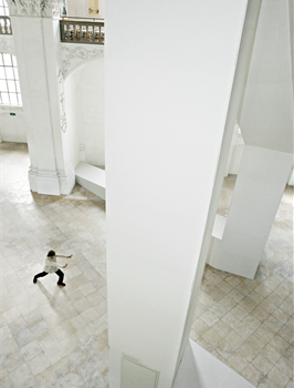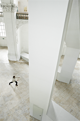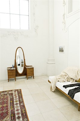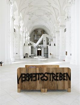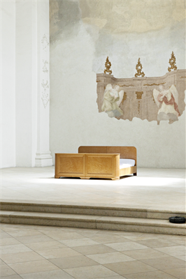 Le chœur de l’église devient l’appartement de l’artiste. Lieu de vie, de repas, de communion, de convivialité et d’ameublement. Lieu de repos, d’habitude, de méditation, d’images et de souvenirs. Lieu de purification, de ressourcement, d’inspiration et d’exposition.